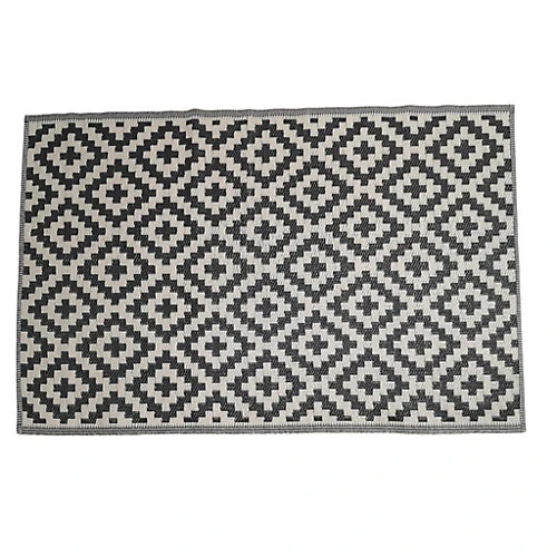 Decorate your outdoor space this year with this stylish outdoor rug. The geometric Grey and white pattern is reversible and will bring two different attractive looks to any seating area whether it’s for the garden, patio or a balcony. The rug is made from polypropylene and the structure of the mat provides a smooth surface ensuring not to scratch any areas. The mat is also weather resistant and durable with UV protection to maintain that elegant look without fading from the sunlight. It is recommended to keep the rug indoors during the winter months to provide longer usage. The rug is easy to maintain and clean, just shake off any debris or wipe down with a damp cloth to keep this looking at it’s best. Dimensions L: 180cm W: 120cm