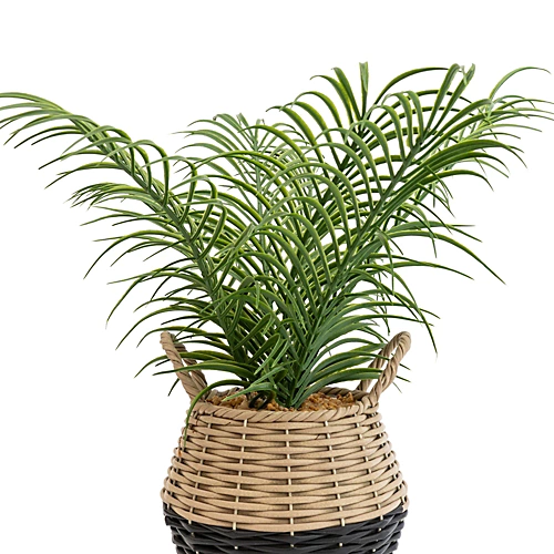 This brand new trendy palm comes in a stunning wicker basket and boasts a highly realistic design. Requiring no maintenance, bring the beauty of the garden into your home with this aesthetic artificial plant. Perfect for home display on shelves, sideboards and windowsills.