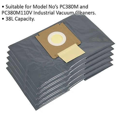 5 PACK M Class Tank Liner For ys06032 & ys06033 Industrial Vacuum CleanersOverview: Suitable for 0M and 0M110V Industrial Vacuum Cleaners. 38L Capacity.Features: