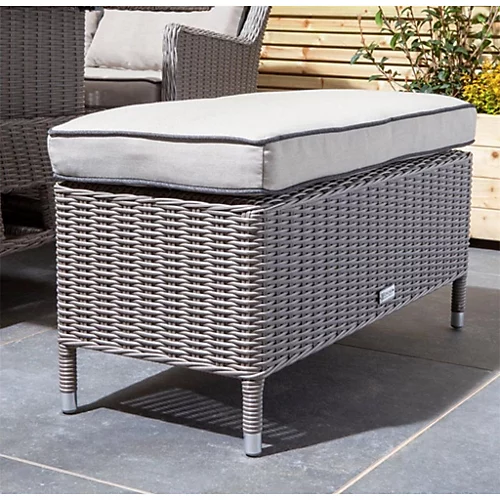 - Natural stone coloured rattan with warm grey cushions with dark grey piping