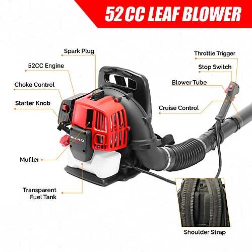 - โ ใ HIGHEST PERFORMING BLOWERใSuperior blowing proven by controlled laboratory testing. Due to the powerful 2-stroke engine, the blower features high speed air flow, once started, it will create a whirlwind to help gather the fallen leaves. It delivers a fan speed of up to 8000 rpm, strong enough for the toughest wet leaves and debris. The air velocity will blow away the competition