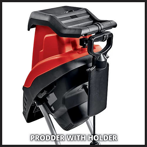 The Einhell GC-KS 2540 electric shredder is a reliable tool for the speedy shredding of material. For effective operation it has two long-lasting, robust reversible blades made of special steel which are driven by a powerful 2,500 W motor with a no-load speed of 4,500 rpm. The large funnel opening means it is convenient to use and makes it easy to feed in the material you want to shred, for branches up to 40 mm in diameter. The funnel has a safety interlock and can be swung down for cleaning and maintenance. There is a motor circuit breaker for protection against overloading. The shredder can be transported quickly and easily around the home grounds and garden to where you want to use it thanks to the robust chassis with wheels. An integrated practical transport handle makes this even easier. The Einhell GC-KS 2540 electric shredder has a shredder debris bag which is fitted quickly and easily on a hook. Also included is a prodder for quickly and safely dislodging any pieces which are left stuck in the funnel.