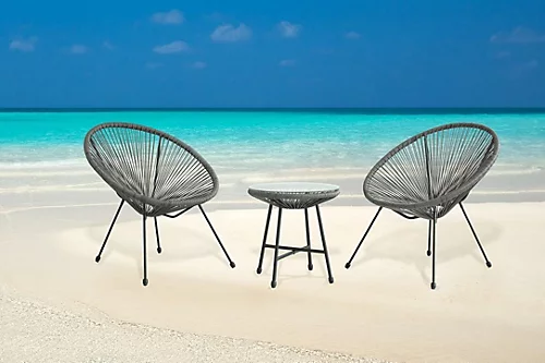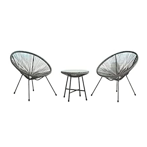 - QUAINT DESIGN The Evre Goa Furniture Set gives that perfect holiday and poolside feeling that weโve all been missing. Featuring two, super stylish, handwoven chairs and a quaint, glass topped coffee table – perfect for any size outdoor space. Sit back and relax in the cosy chairs that are interlaced with premium quality PE rattan that contours to your body shape for that optimal comfort feeling.