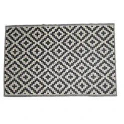 180cm X 120cm Outdoor Geometric Pattern Waterproof Rug Mat For Garden Patio In Grey