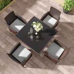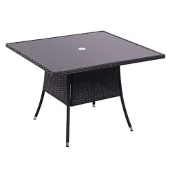 Livingandhome Black Garden Wicker Square Tempered Glass Outdoor Table With Parasol Hole 105 Cm