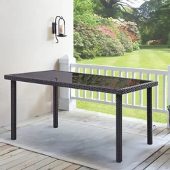 Livingandhome Black Rustic Rectangle Outdoor Wicker Table With Tempered Glass Tabletop 150cm