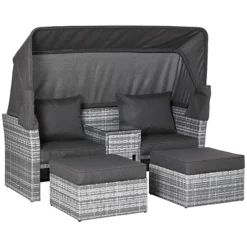 Outsunny 3 PCS Rattan Lounger Recliner Bed Garden Furniture Set With Side Table Black
