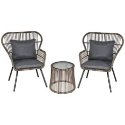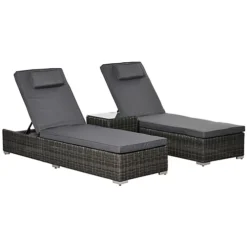 Outsunny 3Pcs Patio 2 Seater Rattan Sofa Garden Furniture Set Coffee With Cushions Black