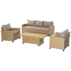 Outsunny 4PC Rattan Sofa Set Outdoor Coffee Table Chair Wicker Garden Furniture Black