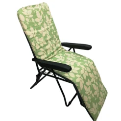 Padded Outdoor Garden Patio Recliner / Sun Lounger In Plain Green