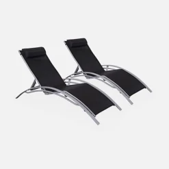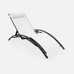 Pair Of Multi-position Aluminium Sun Loungers With Wheels – Elsa – White Frame Grey Textilene Fabric