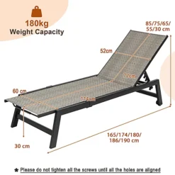 Costway Outdoor PE Rattan Recliner Chair Patio 5-Position Adjustable Chaise Lounge W/ Wheels