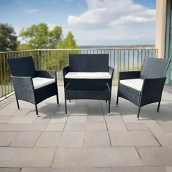 EVRE Nero Black Rattan Garden Furniture Set Patio Conservatory Indoor Outdoor 4 Piece Set