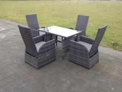 EVRE Grey Madrid Rattan Garden Furniture Set Patio Conservatory Indoor Outdoor 4 Piece Set
