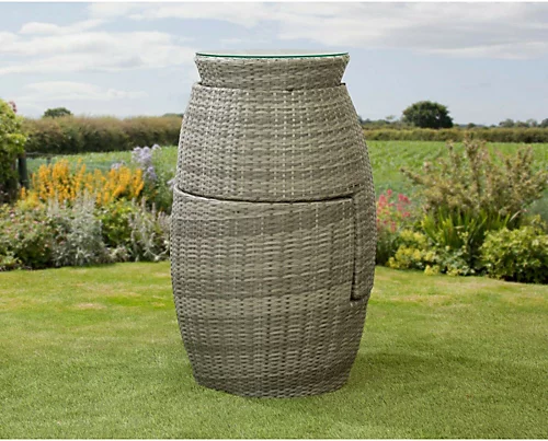Our bottle shape bistro set is made from an all weather synthetic wicker & is ideal for patios and balconies thanks to its compact size