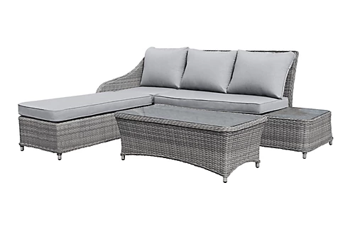 The elegant Hamilton furniture range features deep seating for maximum comfort. This space saving garden furniture set is perfect for bringing people together or for simply lounging in the sun. Its corner design creates an luxurious, stylish spot in your garden to relax on long summer days. The set is made of 8mm double half round wicker over a rust-free aluminium frame that is easy to maintain.