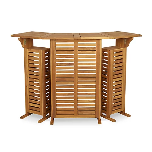 This wooden bar is ideal for serving up drinks and entertaining guests in your garden. The drinks cabinet opens to reveal multiple shelves, for storing your favourite tipples & mixers. It’s made from natural acacia wood – a durable and low-maintenance material that is versatile and a great choice for any style of garden or even a garden room.