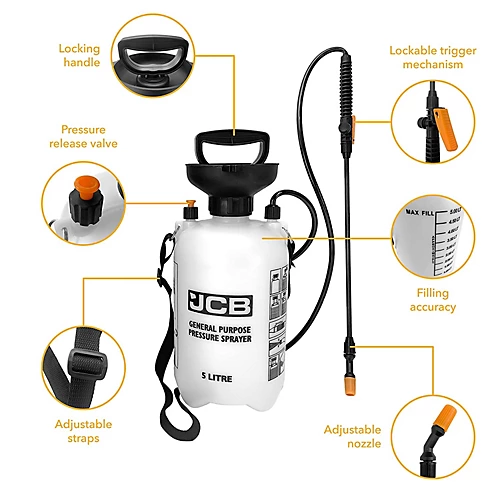 - JCB garden pressure sprayers are built with your safety in mind. This portable washer has a shoulder strap for support and safety