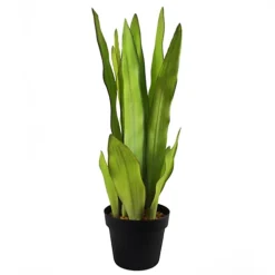 70cm Artificial Sansevieria Moonshine This plant stands 70cm tall. The leaves are all wired so you can either display this as we have in our pictures or you can fold the leaves out slightly if you prefer. Comes fully potted in a black plastic pot (pot measures 17cm wide x 14cm tall.) These look particularly nice when coupled with our decorative planters as shown in some of our pictures. The pot is topped with fixed gravel which is glued down. This plant is available in other colours.