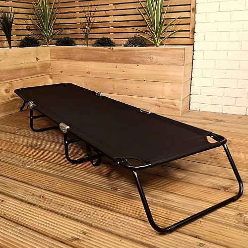 Folding sun lounger bed with ratchet system to allow you to have the back upright, laid flat or several positions in between. Folds up for easy storage. Size: 182 x 56 x 24.5cm. Folded it’s: 54cm x 68cm x 7cm so perfect for storage in small spaces – caravans etc