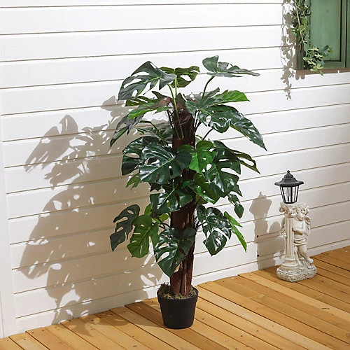Monstera deliciosa Liebm stands out for its elephant-like leaves, like its name, the leaves are large, veined and in an appealing dark green color hue. This lush artificial alocasia plant will be the wow factor in your interior decor. It also comes with a plastric pot.Made of selected plastic, the leaves will look fresh and good year-round. Position it on the table in your entryway to greet your guests.