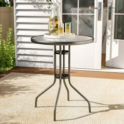 It is suitable for outdoor and indoor use as a dinner table or coffee table. The tempered glass tabletop with a smooth surface is easy to clean and safe to use. The flared table legs ensure the stability of the table so that it wonโt wobble when used. Finished in black, it can blend in any garden style easily.