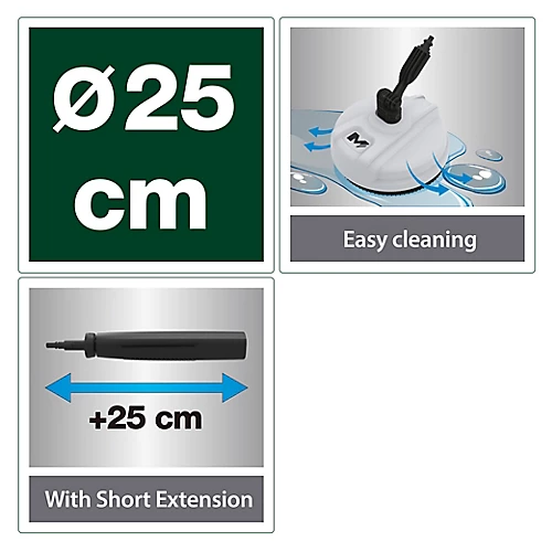 This rotary cleaner is designed to remove stubborn dirt from patios and paths, with a large brush that means you can cover a large surface area quickly. Compatible with our range of Mac Allister pressure washers.