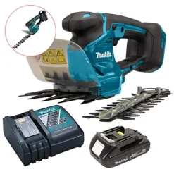 The Makita DUM111 is a cordless and agile 2 In 1 LXT 18V cordless hedge trimmer and grass shear. Its ergonomic design and lock-on function make for comfortable use, whilst the 3-stage cutting height allows you to refine your lawn.