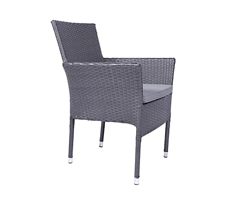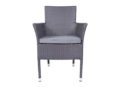 The Malaga 6 Seater Fixed Dining Set is made from a grey flat synthetic rattan weave, it is hand woven onto sturdy steel frames. Consisting of a table that features black inlay glass and six stacking chairs complete with Weather Shield seat cushions.