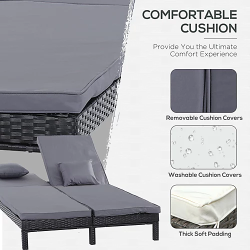 Soak up the sun when it comes out to shine with this outdoor day bed from Outsunny. Formed of two matching and stylish mixed grey sun loungers, each one is made with a powder coated metal frame for strength, with wicker rattan wrapped for durability. Adjustable to five different positions for optimal comfort, each rattan lounger is fitted with a padded cushion which covers the full length and width. The perfect set to enjoy the sun now as the hotter weather approaches this season.