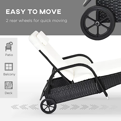 - โข Item Name: Rattan Lounge Set โข Brand Name: Outsunny โข Material Used: Galvanized steel, PE rattan โข Colour: Black, cream white โข Lounger Size: 200L x 73W x 103H cm โข Side Table Size: 40W x 40D x 40H cm โข Box Dimension: 123L x 53W x 29H cm, 123L x 53W x 29H cm โข Backrest Height: 30-103 cm โข Armrest Height: 56 cm โข Lounger Weight Capacity: 160kg โข Side Table Weight Capacity: 50kg โข Gross Weight: 19kg, 25kg โข Net Weight: 40kg โข Flat Pack: YES โข Assembly Required: YES โข Other Key Info: Seat size: 57W x 120D x 30H cm, armrest size: 8W x 56H cm, backrest size: 79L x 50W cm โข Custom label: 862-010BK