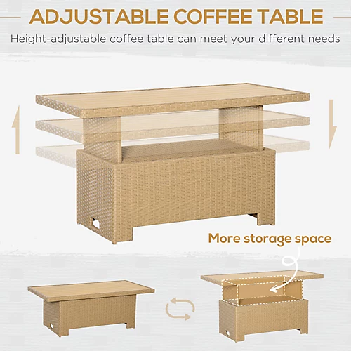 - FUNCTIONAL COFFEE TABLE: Wood-effect plastic table-top for style and durability, easy to clean. The garden sofa is easy to adjust the coffee table with a handy holding spot, can be use as coffee table to provide more storage space, or a dining table great for outdoor dining times under the sun.