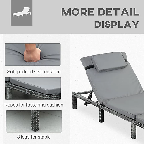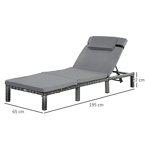 Lounge in luxury, whether in the garden or patio outdoors – thanks to this longline sun seat from Outsunny. Formed of a powder coated metal frame, with PE wicker wrapped around: weather-resistant, durable and beautiful. The back sets to five different positions so you can chose an angle most comfortable for you. The comfortable longline seat comes with a removable cushion the polyester cover can be washed to keep it clean. Style and comfort, blended into one.