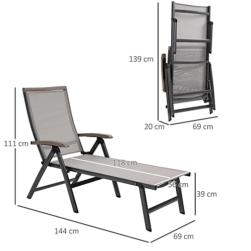 This reclining sun lounger from Outsunny is perfect for relaxing in the sun for hours on end. The breathable mesh fabric on the seat and back holds you comfortably, with high back and armrests for support. Adjustable to five positions, you can change what position you lay back. Folding design make the garden sun lounger is easy to carry with you and store.