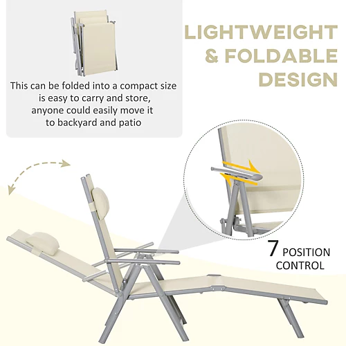 Relax easily all day long – thanks to this Outsunny garden loungers. The seven-level adjustable back means you can rest back to a position you want: whether shutting eye, reading a book or catching up with a friend. The metal frame is strong, with three long base legs keep you balanced, wrapped in fabric to hold your body with full support. The removable top pillow keeps your head comfortable. When you’ve finished using it, the garden sun lounger is easy to fold up, carry and store.