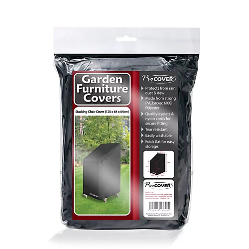 Keep your stackable garden chairs protected from the elements with this heavy-duty cover. Superb quality, made from very strong PVC backed 600D Polyester, this cover will offer peace of mind during the winter months that your stacked chairs are protected.