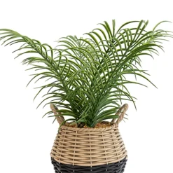 20cm Palm Artificial Plant In Natural Wicker Basket