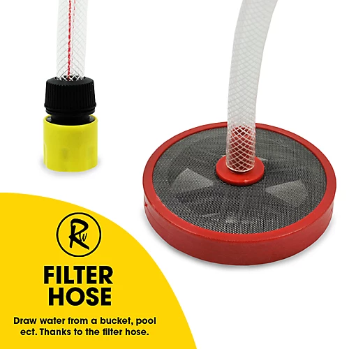 Included is a 1 metre chemical input hose with filter for the application of cleaning agents.