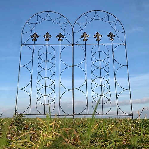 A decorative metal garden trellis that is attractive and practical for providing climbing plants with support in the garden. These trellises can be used on a garden wall to aid climbers, or simply to add decoration and add a touch of elegance.