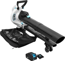 swift 3 in 1 Cordless Leaf Blower Vacuum and Mulcher, Handheld Battery Garden Blower/Vacuum and Shredder with 12L Collection Bag, Wheeled Rack, Adjustable Auxiliary Handle and Detachable Shoulder Strap, 35:1 Shredding Ratio, Battery & Charger Included