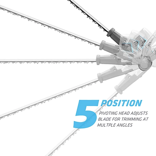 5-position adjustable head from 105° to 205° offers customized cutting angles for hedges of any shape and size.