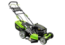 This Zipper BRM52EST is a powerful 6in1 21″ petrol lawn mower for those who need a robust petrol lawn mower for medium and larger sized gardens. It features a 3.6 kW 173 cc 4-stroke engine for powerful performance, easy E-start for quick starting, self-propelled power for effortless hillside mowing, generous 52 cm cutting width, and 60 L hard plastic grass box. Ideal for mowing, catching, mulching, side discharge and self-propelled. Suitable for all types of gardens including those with sloping lawns.